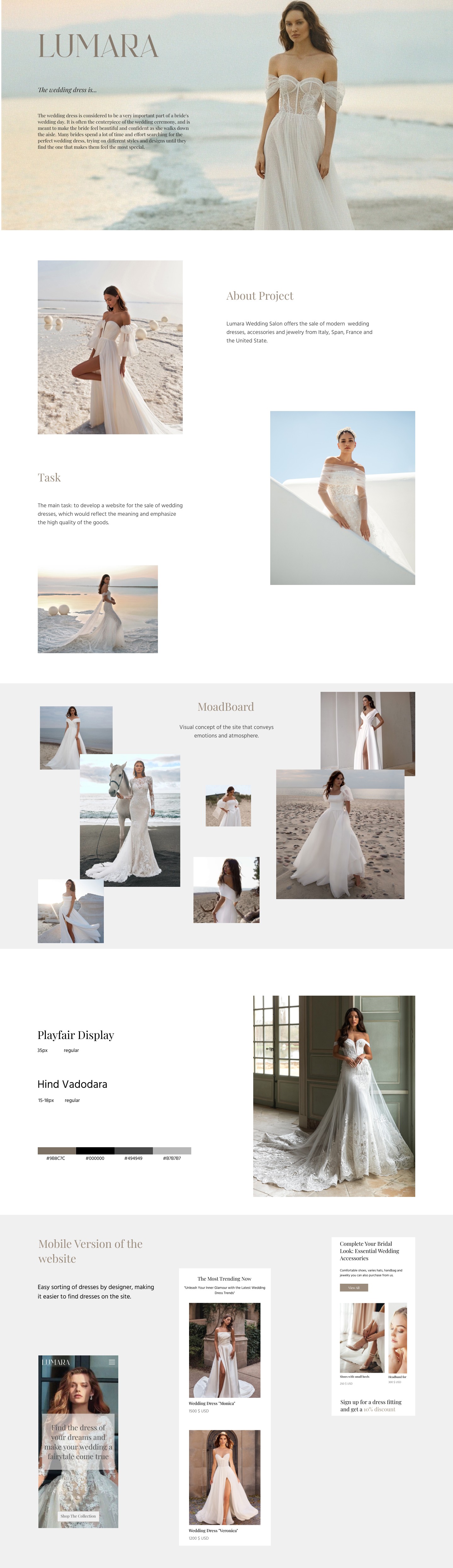 The LUMARA project is an e-commerce website dedicated to bridal haute couture, focused on offering a luxury experience for brides seeking the "perfect dress." With a clean and sophisticated visual identity, the platform uses light tones and elegant typography to highlight exclusive collections of dresses and essential accessories, such as jewelry and shoes. In addition to showcasing products with high-quality photographs, the site facilitates conversion through a system for scheduling in-person fittings, integrating the brand's personalized service into the digital environment.